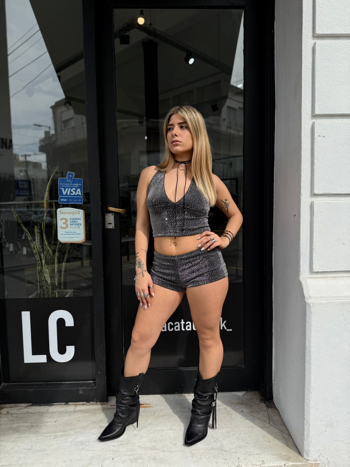 Mini short de tela, repleto de strass. Modeliot talle unico. El.astizado.