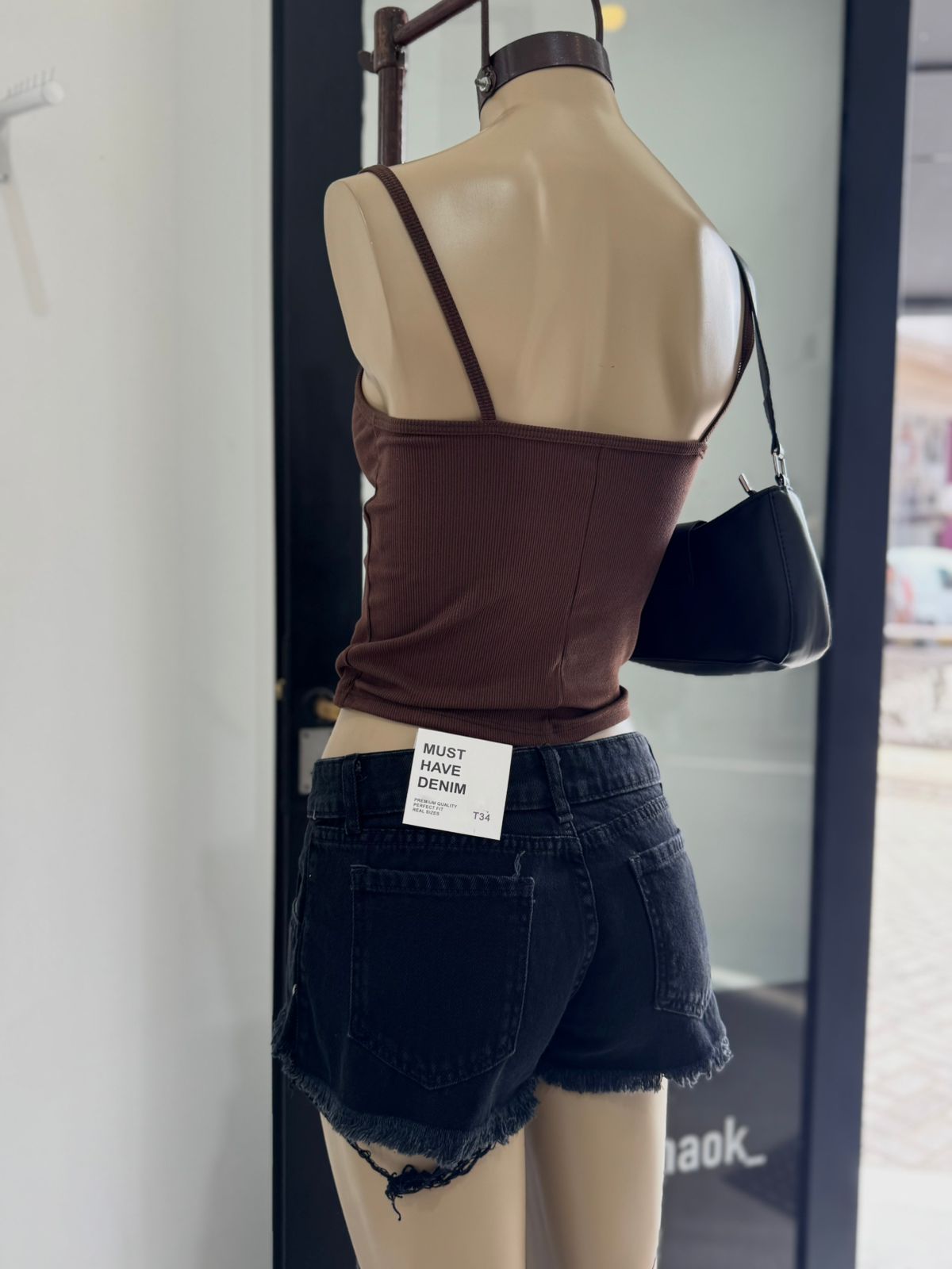 Short negro. Modelo tiro bajo. Son rigidos. Talles del 34 al 42.