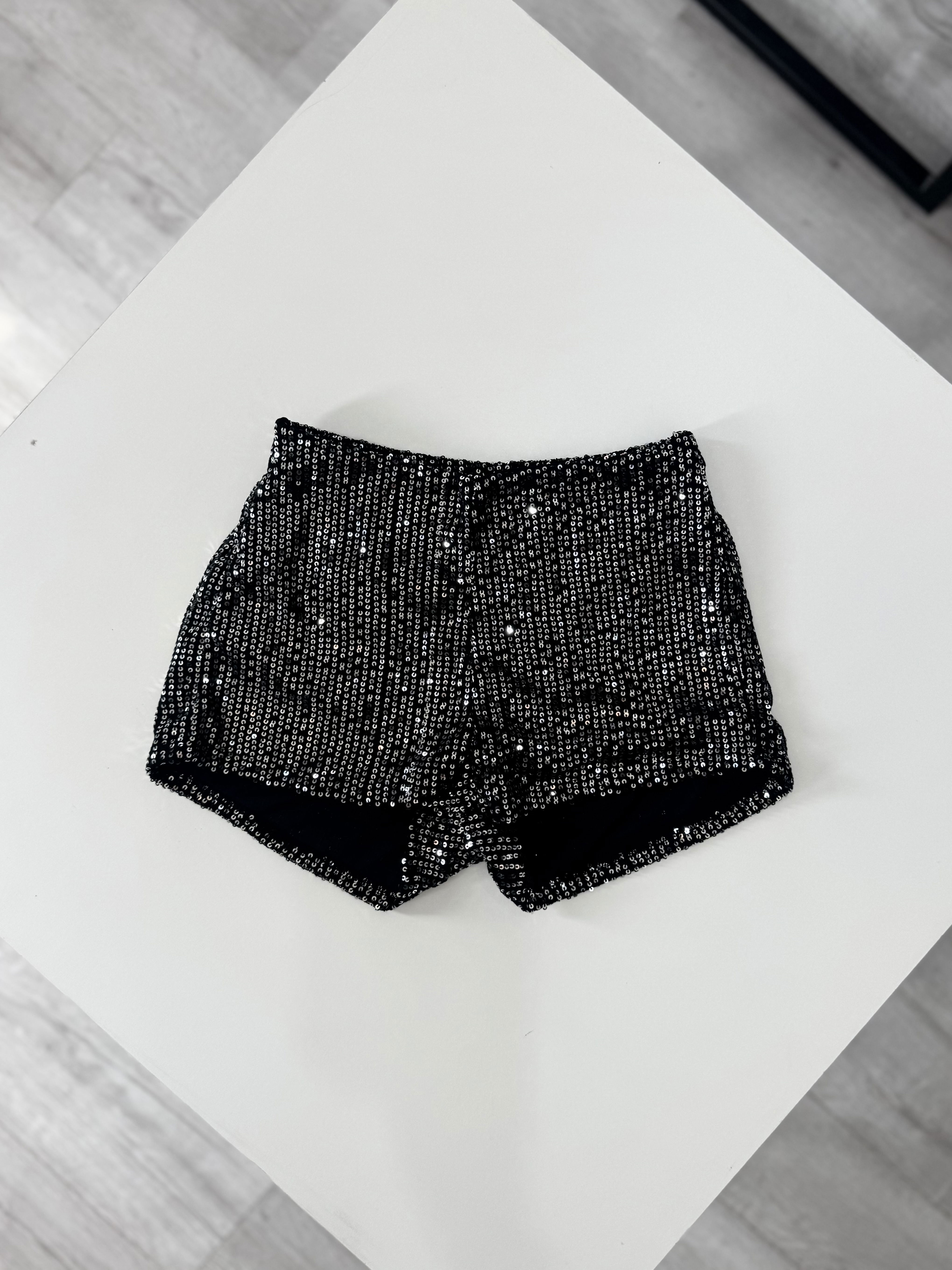 Short de lentejuelas. Talle único. Color negro y plateado. Talle único